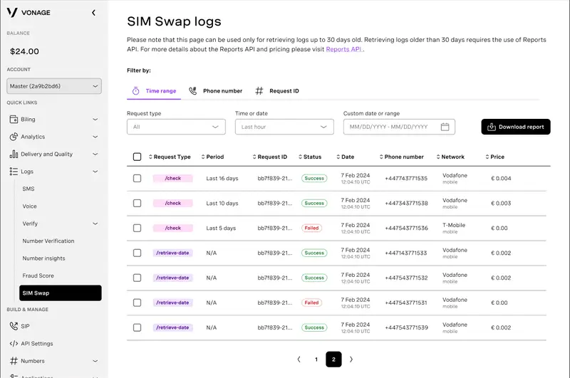 Cybersecurity Vonage – Telecom – SIM Swap – Dashboard